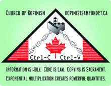 Удивительно, как неожиданным образом порой сходятся крайности. Всего год назад Швеция официально признала новую религию и зарегистрировала исповедующую её экзотическую церковь под названием The Church of Kopimism, или Церковь копимизма (от англ. copy me – «копируй меня»). Основал её 19-летний студент философии Исаак Герсон. За считаные месяцы число её апостолов увеличилось до полутора тысяч, и распространились они по всему свету, от США до России.
