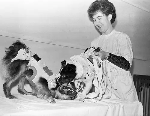 Собаки Дамка и Козявка перед полётом в космос