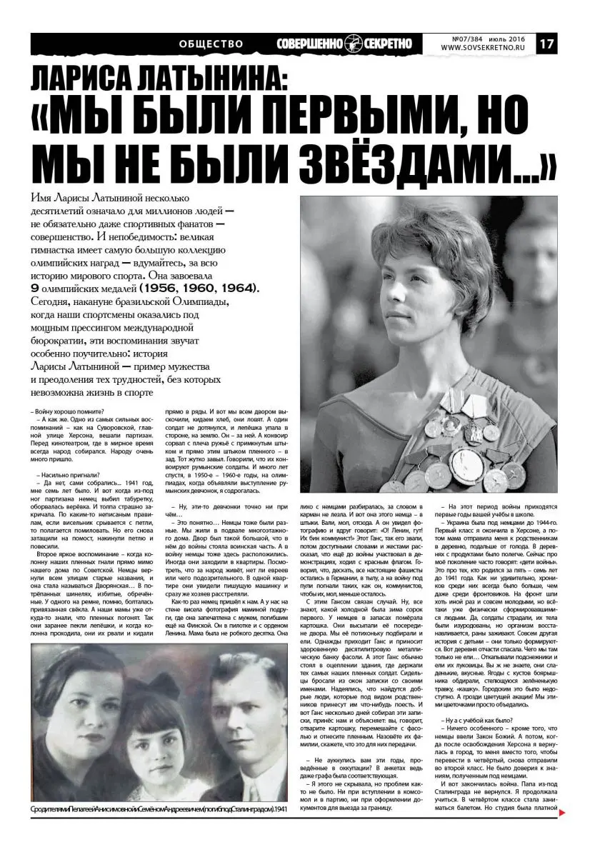 Сегодня, накануне бразильской Олимпиады, когда наши спортсмены оказались под мощным прессингом международной бюрократии, эти воспоминания звучат особенно поучительно: история Ларисы Латыниной – пример мужества и преодоления тех трудностей, без которых невозможна жизнь в спорте