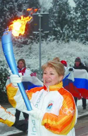 С олимпийским огнём по дороге в Турин. Италия. 2006. Эстафету с горящим факелом Лариса Латынина приняла