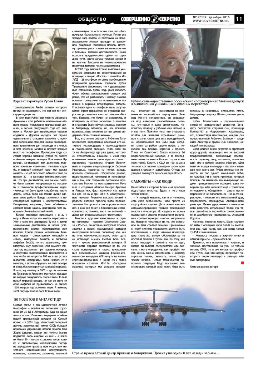 Все, кто лично знаком с Рубеном Татевосовичем, непременно отмечают его активное неравнодушие к происходящему в гражданской авиации. Взять хотя бы ту же Антарктиду, где уже давно нет своей отечественной авиации. В 2008 году правительственная делегация во главе с министром транспорта Игорем Левитиным и первым вице-премьером Сергеем Ивановым, прилетев на полюс холода, провела совещание. Обсуждали доклад, подготовленный пилотами и полярниками о том, как сохранить достойное присутствие России на этом континенте. Речь шла о создании лётного Центра Арктики и Антарктики, флот которого составили бы два Ил-76 и три Ил-114, оборудованные лыжами. Решение высоких гостей к радости авторов проекта было положительным. Но прошло с тех пор уже восемь лет, а оно всё тонет в бесконечных согласованиях, и, похоже, так и не всплывёт – денег для финансирования проекта нет.