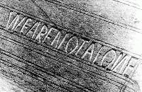 Пат Дельгадо: «Под нами на пшеничном поле мы увидели целый ряд букв, которые на первый взгляд выглядели как одно длинное слово. Прочитать сразу мне его не удалось. Тогда я быстро взял камеру и сделал несколько снимков… Мы пристально вглядывались в буквы и пытались расшифровать слово. И только когда мы пролетали над ним в последний раз, нам стало ясно, что на поле не одно, а четыре слова, соединенных в одно. WEARENOTALONE означало WE ARE NOT ALONE («Мы не одиноки»). Только буква N в слове ALONE выглядела несколько странно».