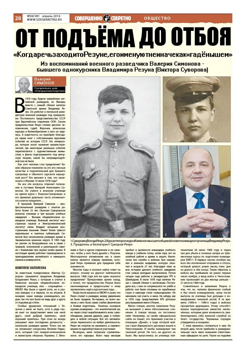 Из воспоминаний военного разведчика Валерия Симонова – бывшего однокурсника Владимира Резуна (Виктора Суворова)
