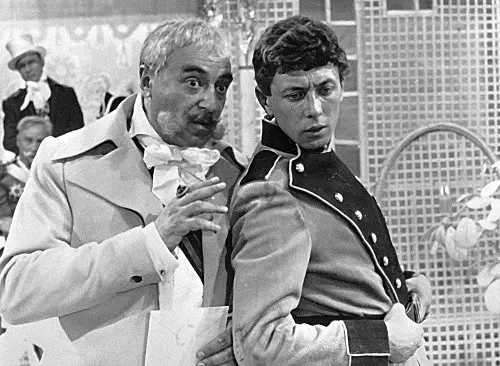 Марина Неёлова в роли Принцессы и Олег Даль в роли Солдата на съёмках музыкальной ленты «Старая, старая сказка». 1968