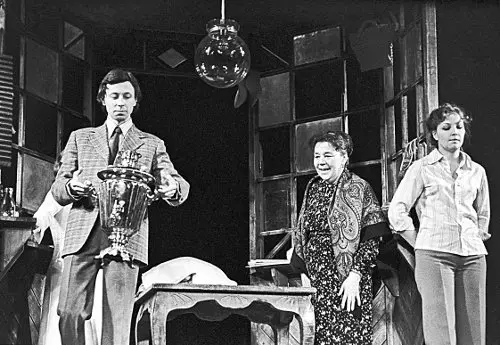 Олег Даль, Мария Андрианова и Ольга Остроумова в сцене из спектакля Театра на Малой Бронной «Веранда в лесу» в постановке А. Эфроса. 1978