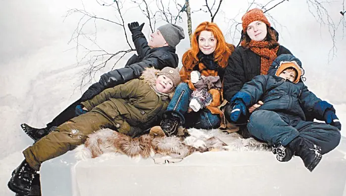 Дочь Маша, её муж Борис с детьми – Львом и Аней, Юрий Зерчанинов и Клара Новикова на новогоднем отдыхе в Лапландии. 2005