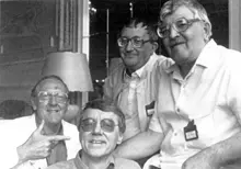| Брайан Олдис, Сам Лундвалль, Борис Стругацкий, Аркадий Стругацкий. Брайтон (Англия), 1987 год | |