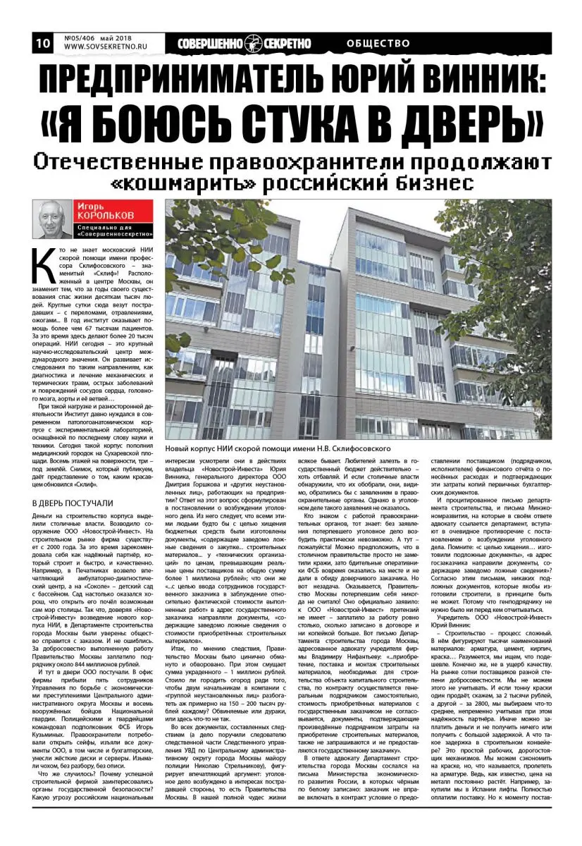 Что же случилось? Почему успешной строительной фирмой заинтересовались органы государственной безопасности? Какую угрозу российским национальным интересам усмотрели они в действиях владельца «Новострой-Инвеста» Юрия Винника, генерального директора ООО Дмитрия Горшкова и «других неустановленных лиц», работающих на предприятии? Ответ на этот вопрос сформулирован в постановлении о возбуждении уголовного дела. Из него следует, что всеми этими людьми будто бы с целью хищения бюджетных средств были изготовлены документы, «содержащие заведомо ложные сведения о закупке… строительных материалов… у «технических организаций» по ценам, превышающим реальные цены поставщиков на общую сумму более 1 миллиона рублей»; что они же «…с целью ввода сотрудников государственного заказчика в заблуждение относительно фактической стоимости выполненных работ» в адрес государственного заказчика направляли документы, «содержащие заведомо ложные сведения о стоимости приобретённых строительных материалов».