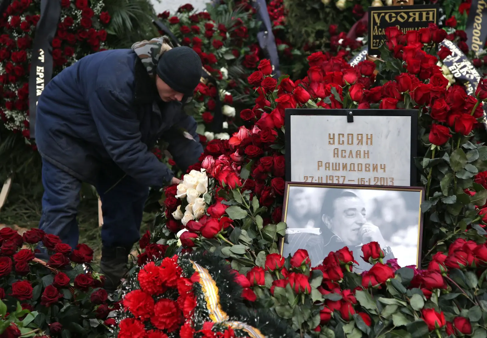 На фото: Могила Аслана Усояна на Хованском кладбище. Известный криминальный авторитет по кличке Дед Хасан был убит в центре Москвы в январе 2013 г.