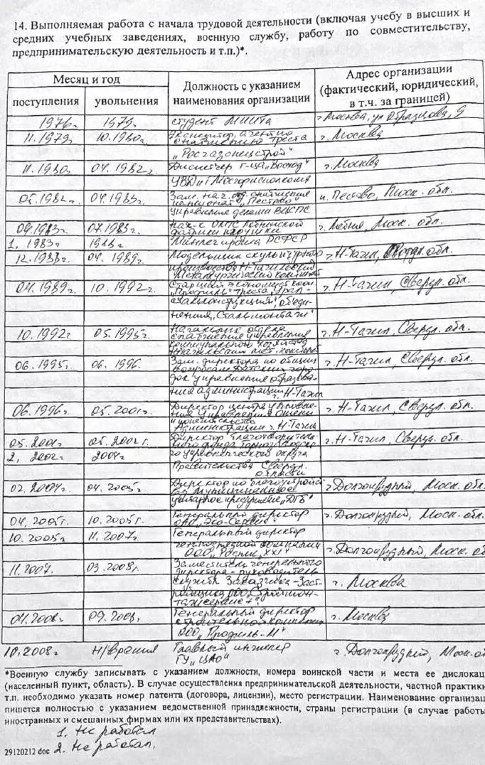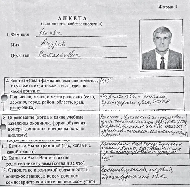 Анкета, заполненная собственноручно Андреем Нечтой, разительно отличается от реальной биографии бывшего замдиректора ЦАО: с 1977 года он находился в местах лишения свободы за изнасилование и кражу, а не работал экспедитором в «Росгазспецстрое». Свой второй срок Нечта якобы проработал начальником ОМТС Долгопрудненской фабрики игрушек