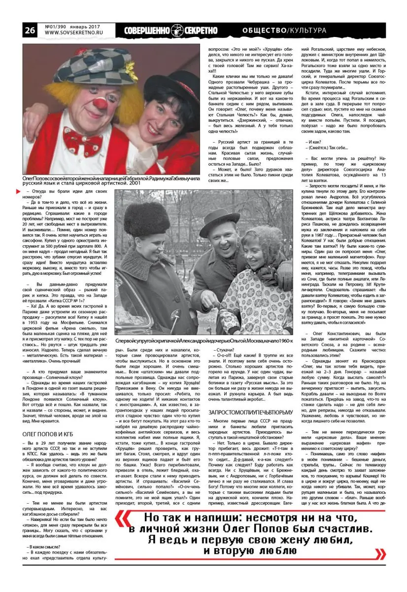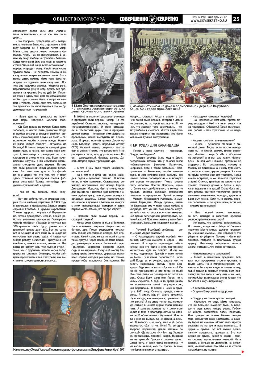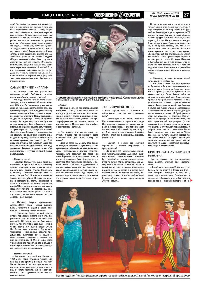 Многолетняя эпопея возвращения на родину Солнечного клоуна Олега Попова началась с публикации в газете «Совершенно секретно» в декабре 1997 года.