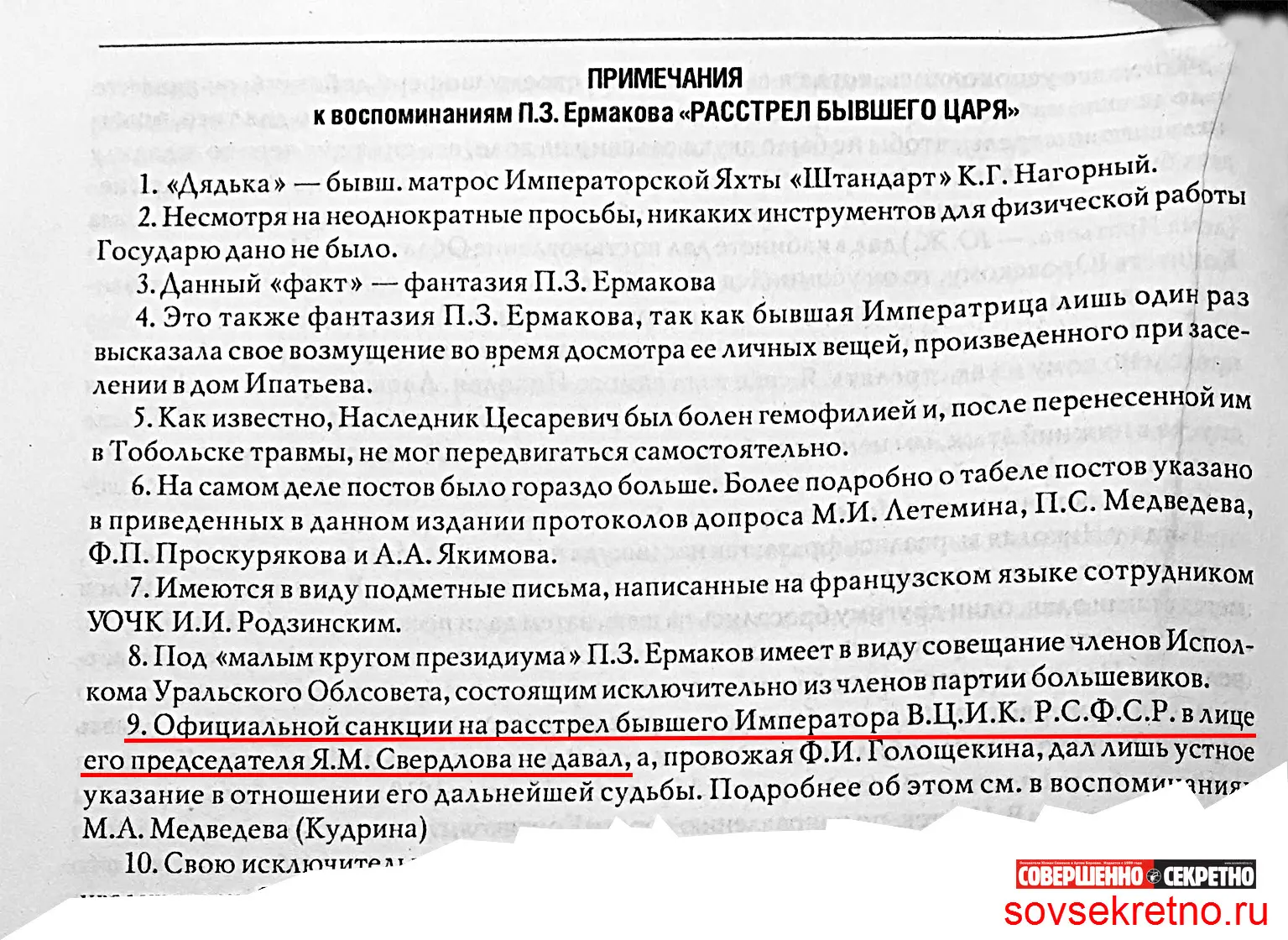 Это нам сейчас кажется, что советская власть в тот момент была единой: Кремль 1918 года обладал не такой властью, как, скажем, Сталин в 1937-м. Так что с расстрелом царской семьи Уральский совет «подставил» Кремль, и очень жёстко. Ещё раз отмечу, что решение по уничтожению царской семьи Урал принял задолго до июля 1918-го и тщательно готовился к совершению этого убийства.