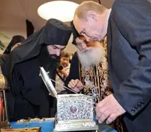 Настоятель Ватопедского монастыря отец Ефрем с реликвией |