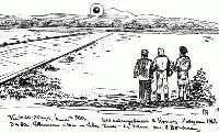 И вот в 22.30 произошло что-то невероятное: у меня защелкали легкие! Представьте мое состояние, когда своими ушами слышишь, как «шлепают» твои легкие... Я начал делать физические упражнения, но неприятные ощущения не проходили. Тогда на случай боевой тревоги я соединил по связи командира дивизиона и оперативного дежурного полка, а сам поднялся наверх и вышел наружу. Не успел сделать несколько шагов, как увидел слева светящийся красно-оранжевый шар диаметром 2,5–3 метра (справа была луна). Я ринулся вниз, к телефону: командир дивизиона тоже увидел шар через окно. Переговорив с ним, я снова поднялся наверх.