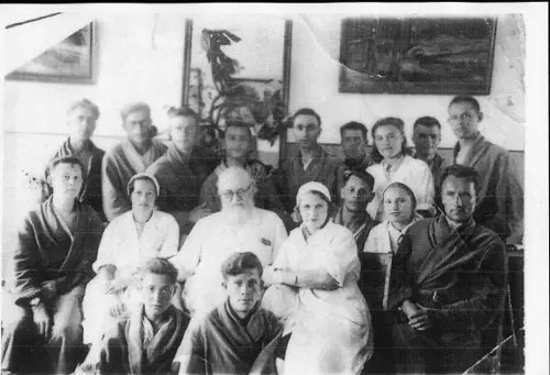 Главный хирург эвакогоспиталя № 15-15 Войно-Ясенецкий с медперсоналом и ранеными