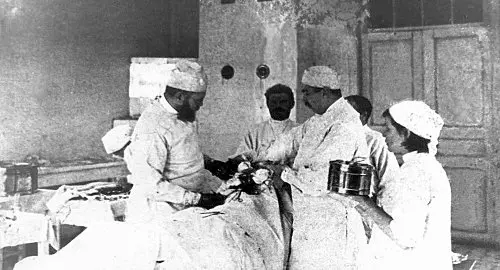 Хирург Валентин Войно-Ясенецкий (слева) проводит операцию в земской больнице