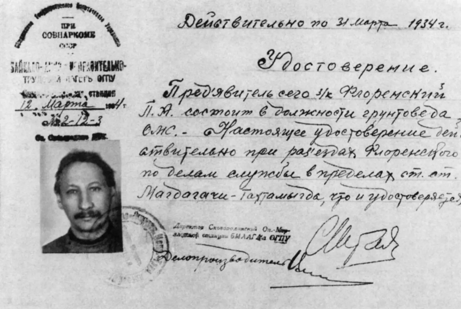 На фото: Удостоверение заключенного Павла Флоренского. В лагере грунтоведы нужнее философов (из архива семьи Флоренских)