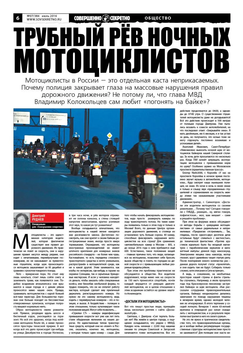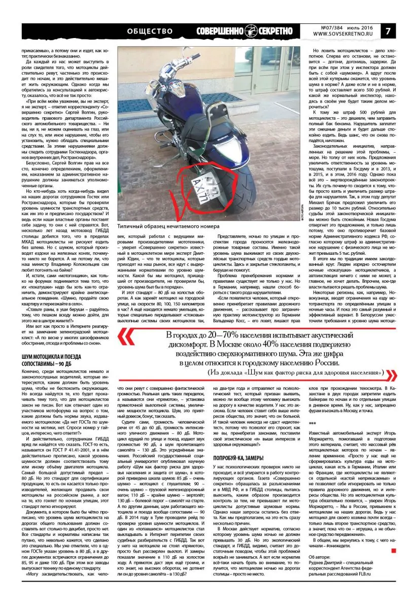 У нас психологических проверок никто не проходит, и всё упирается в работу контролирующих органов. Газета «Совершенно секретно» обращалась за разъяснениями и в МВД РФ, и в ГИБДД столицы, пытаясь выяснить, каким образом производится контроль за тем, не превышают ли мотоциклисты допустимые шумовые нормы. Однако наши запросы остались без ответа. Как мы предполагаем, на это есть сразу несколько причин