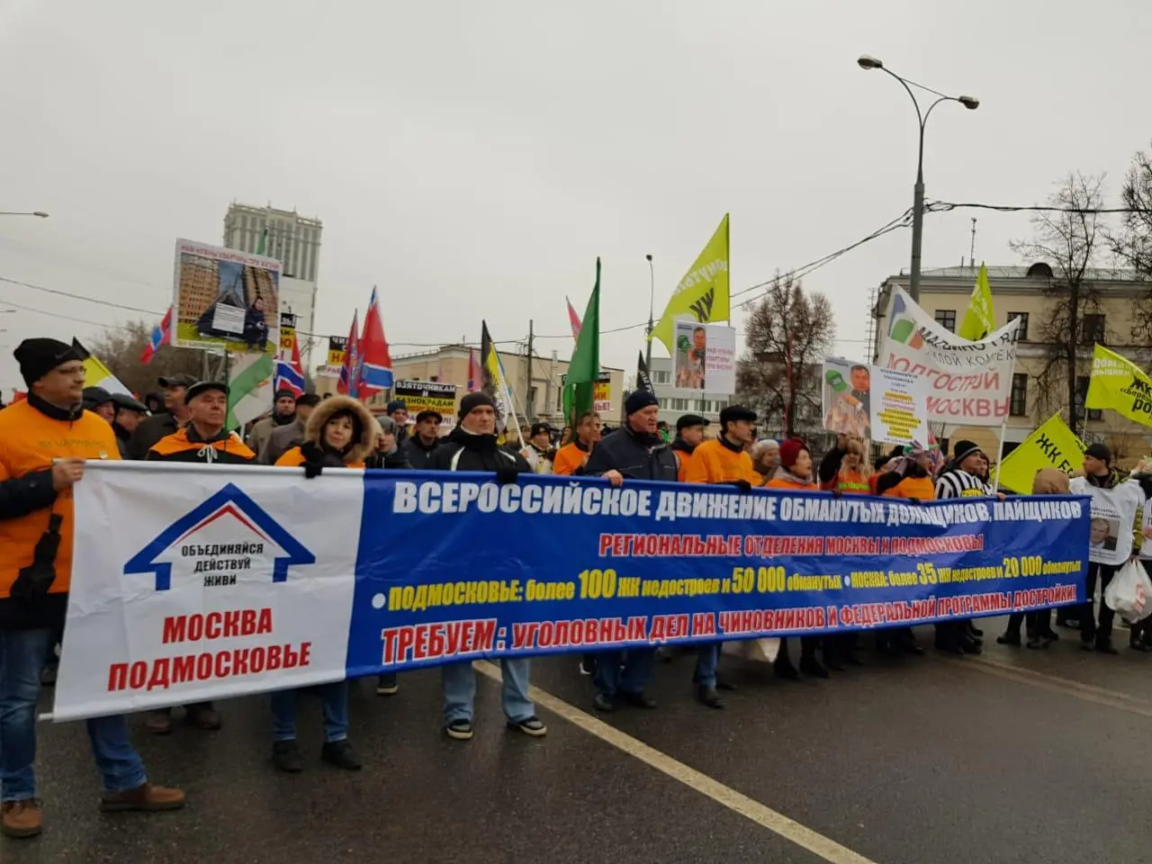 К станции метро «Октябрьское поле» пришли представители таких движений как НПСР, «Левый фронт», «Всероссийское движение обманутых дольщиков и пайщиков», «Сталинский полк», партий «Другая Россия», «Великая Россия» и другие. Лозунги марширующих гласили: «Смени систему!», «Феминизм и разврат - вне русского закона», «Наркобарыгам - смертную казнь!», а также «Руки прочь от Грудинина!»