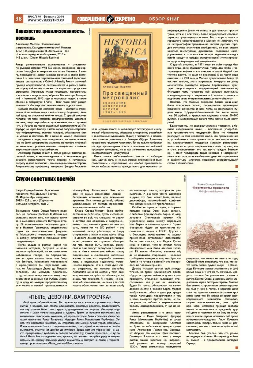 Александр Мартин. Просвещённый метрополис. Созидание имперской Москвы 1762–1855: пер. с англ. Н. Эдельмана. – М.: Новое литературное обозрение, 2015.– 448 с.: ил.– (Серия Historia Rossica)