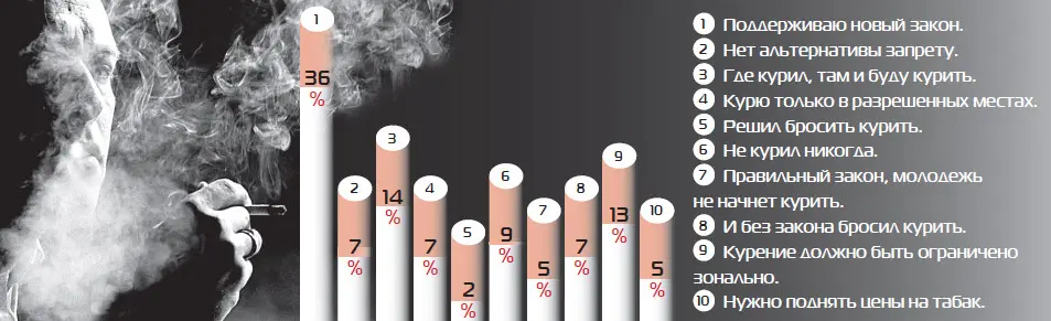 Курю всю сознательную жизнь, считаю эту привычку вредной, но с запретом частично не согласен. Почему, например, нельзя курить в кафе и ресторанах? Ведь там давно уже есть курящие и некурящие зоны. Можно, например, пойти по английскому пути и сделать отдельные заведения для курящих.