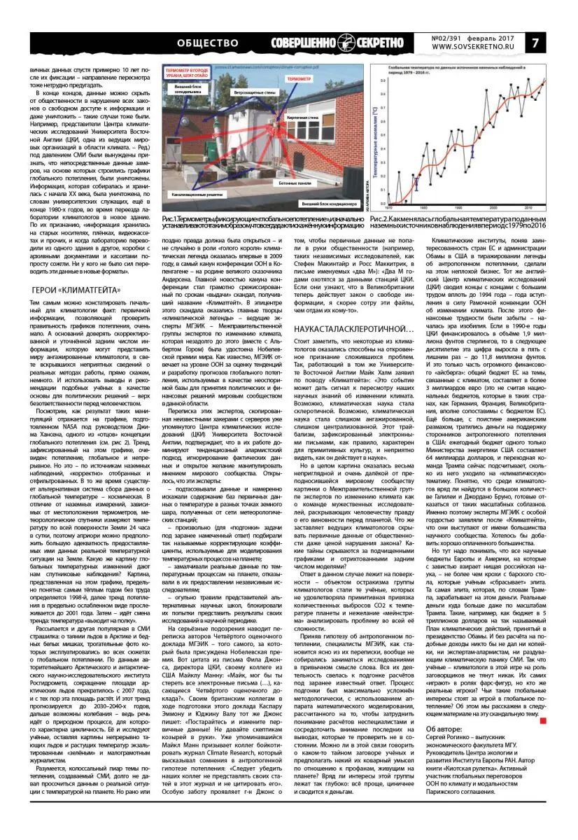 Тем самым можно констатировать печальный для климатологии факт: первичной информации, позволяющей проверить правильность графиков потепления, очень мало. А оснований доверять скорректированной и уточнённой задним числом информации, которую могут представить миру ангажированные климатологи, в свете вскрывшихся неприятных сведений о реальных методах работы, прямо скажем, немного. И использовать выводы и рекомендации подобных учёных в качестве основы для политических решений – верх безответственности перед человечеством.