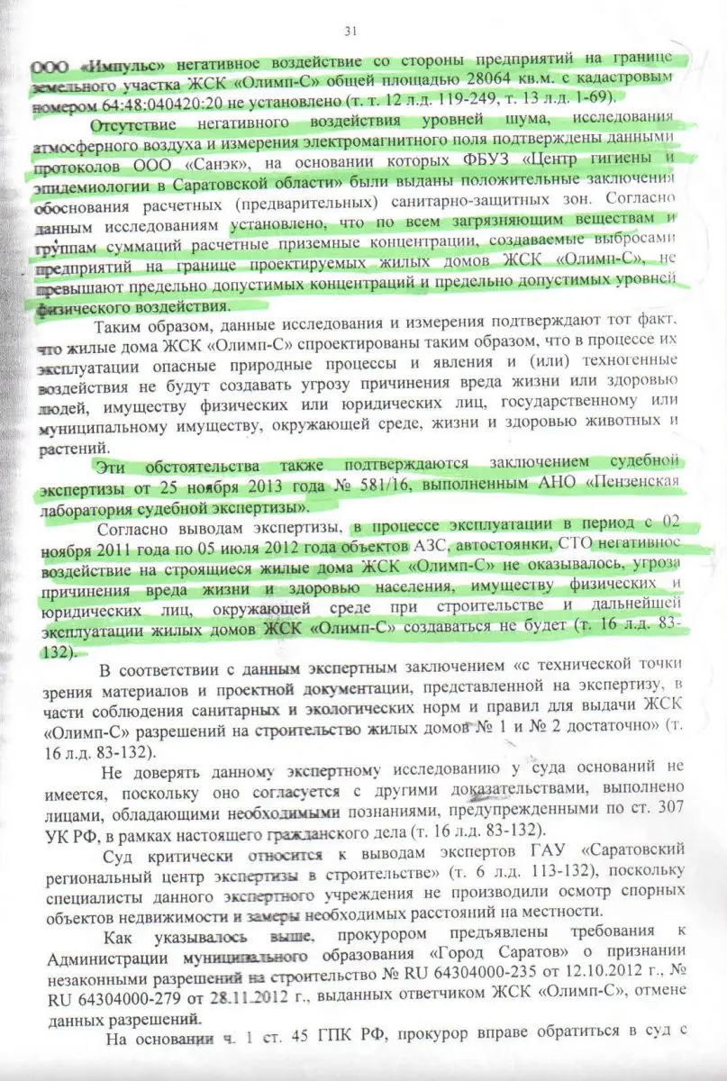 Это дело началось осенью 2012 года, когда на плотно застроенных землях «старого» Солнечного начали возводить комплекс из четырех жилых домов. Земельный участок, выбранный ЖСК «Олимп-С» для строительства, оказался не самым удачным – вокруг плотное кольцо промышленных объектов: автосервис, стоянка и АЗС. По санитарным нормам застройщик должен был отступить от них 50–100 метров, но расстояние заметно сократил, чем вызвал вопросы у представителей правоохранительных органов. Можно ли назвать такое тесное соседство благоприятным? Или, кроме эстетического неудовольствия, оно способно причинить реальный ущерб здоровью новоселов? Кстати, генеральным подрядчиком объектов выступала компания, вроде как приписываемая известному депутату Леониду Писному – «Саратовоблжилстрой», которую уже не раз уличали в нарушениях при возведении и сдаче жилых домов…