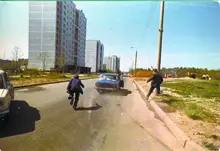 | Оперативник МУРа Иван Бирюков стреляет в машину Иванькова, пытающегося скрыться | |