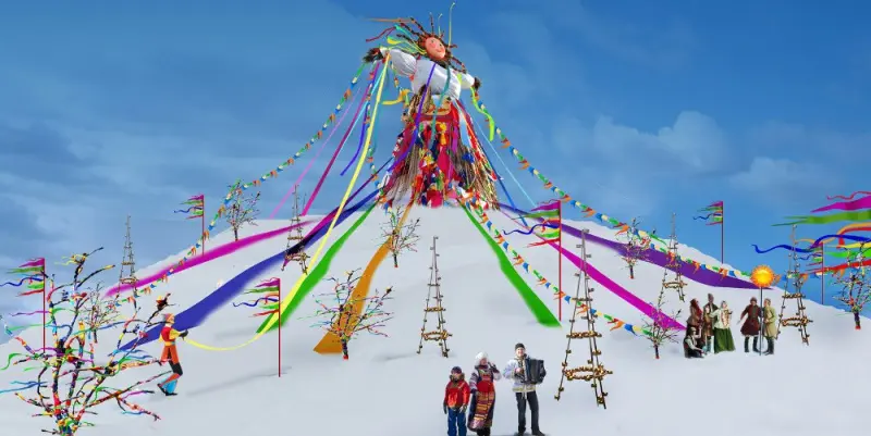Прощеное Воскресенье также называли целовальником. В этот день завершались веселья и гулянья, на ледяных горках разводили костры, чтобы растопить лед и прогнать холод. Кульминация праздника — сожжение чучела. Ждут этого события всю неделю. Под всеобщее ликование толпы разжигают костер. Сопровождают сожжение песнями, плясками, хороводом. В костер выбрасывали мусор, старую одежду, чтобы это вернулось в новом виде и принесло в дом достаток.
