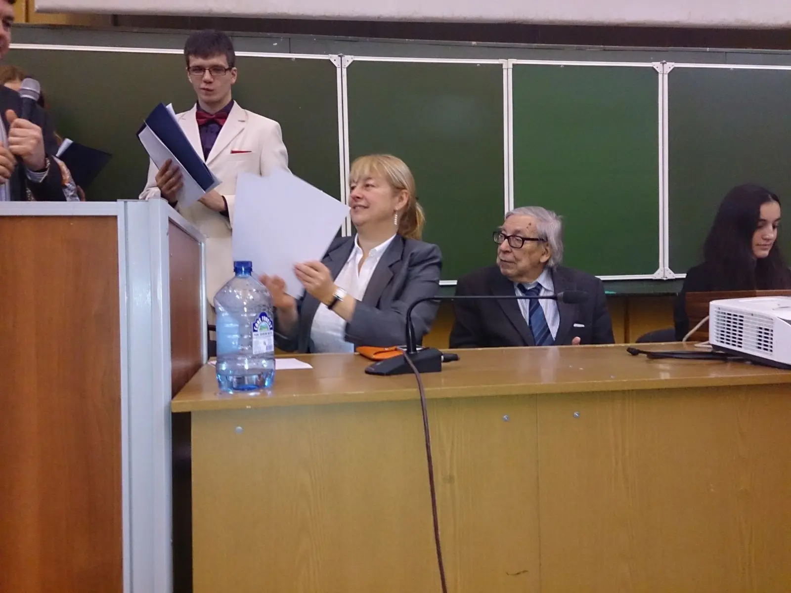 В президиуме — декан факультета Елена Вартанова и президент факультета Ясен Засурский