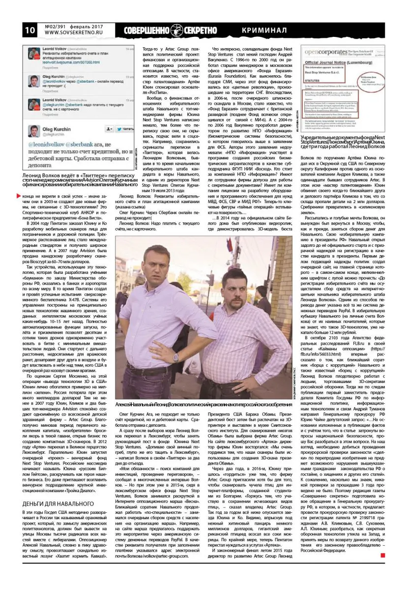 В октябре 2013 года Агентство федеральных расследований FLB.ru в своей статье «Кайманы оппозиции» впервые рассказало о том, как ближайший соратник «борца с коррупцией» Навального и также известный «борец с коррупцией» Леонид Волков плодотворно работал с людьми, торговавшими 3D-секретами российской оборонки. Тогда же по следам публикации первый заместитель председателя Комитета Госдумы РФ по информационной политике, информационным технологиям и связи Андрей Туманов направил Генеральному прокурору РФ