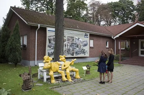 У входа в Немецко-Русский дом в Калининграде гостей встречают фигуры подвыпивших немца с аккордеоном и русского с балалайкой
