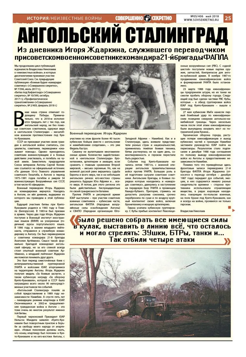 Мы продолжаем цикл публикаций журналиста Владислава Николаева о «неизвестных войнах», в которых десятилетиями принимал участие Советский Союз. См. предыдущие публикации: «Боевые будни «камарадас советикус» («Совершенно секретно», № 7/396, июль 2017 г.); «Битва под Кифангондо» («Совершенно секретно», № 10/399, октябрь 2017 г.); «Профилактическое гранатометание» («Совершенно секретно», № 2/403, февраль 2018 г.)