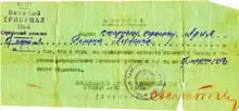 | Справка военного трибунала о снятии судимости «за проявленное мужество», выданная старшему сержанту Семёну Арии в 1943 году | |