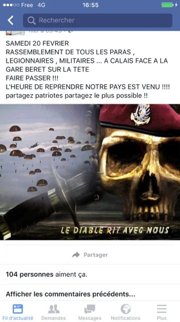 8 февраля 2016 года суд приговорил двух участников митинга в Кале к реальным срокам тюремного заключения, правда небольшим. Суд над самим 75-летним генералом Пикмалем перенесён на май, поскольку состояние здоровья ветерана Иностранного легиона заметно ухудшилось. На этом фоне не стоит удивляться тому, что разгневанные бывшие легионеры, среди которых силён дух боевого братства, решили продемонстрировать свою сплочённость и выйти на улицу. В интернет-рассылке, которая приходит на мобильные устройства ветеранов, говорится: «20 февраля – большой сбор в Кале всех бывших десантников, легионеров и военных возле вокзала. Пришло время вернуть себе нашу страну!»