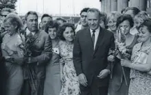 | Иногда в присутствии Леонида Брежнева (слева) капелька женского внимания перепадала и другим видным членам партии (справа – глава Совмина Алексей Косыгин) | |