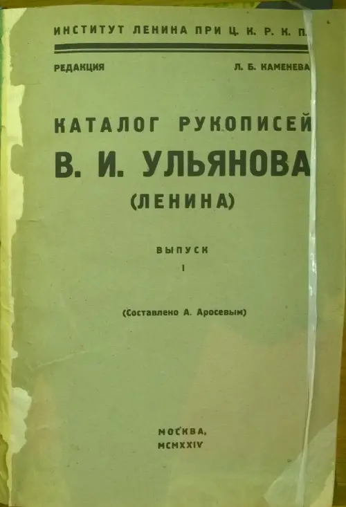 Двумя годами позже, за несколько месяцев до смерти вождя революции, пленум московского комитета партии постановил создать Институт В.И. Ленина, объявив его «государственным хранилищем всех рукописных материалов Владимира Ильича Ульянова (Ленина) и всех документов, имеющих отношение к его деятельности». Его первым руководителем был Лев Каменев.