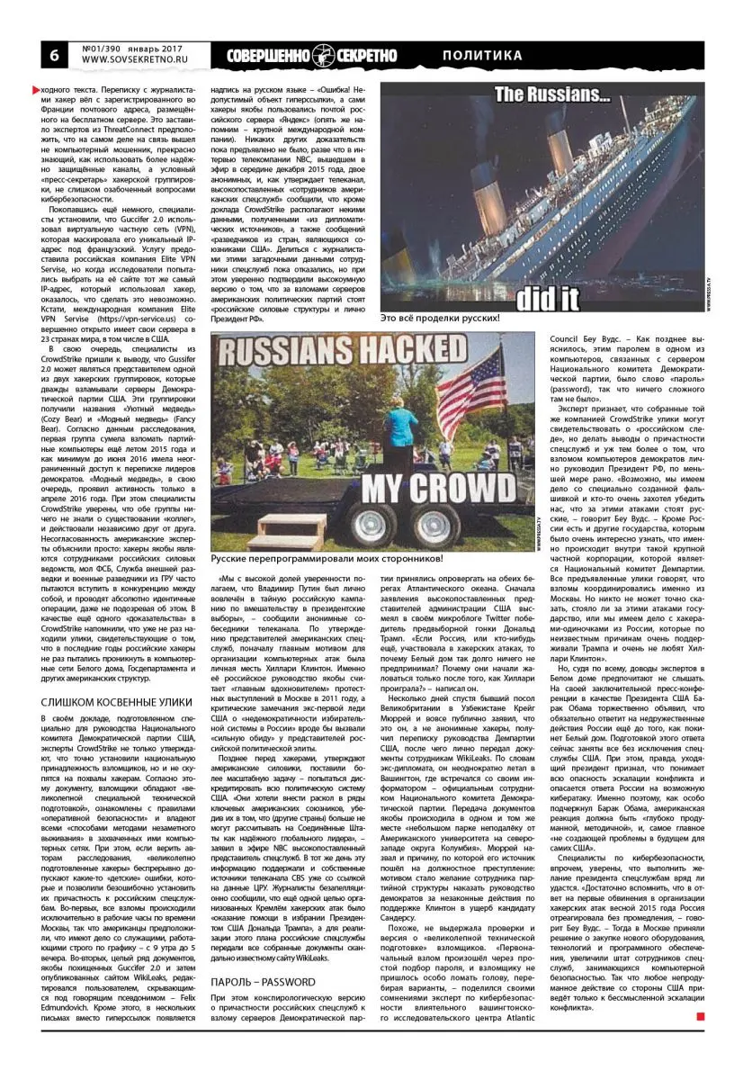 ности влиятельного вашингтонского исследовательского центра AtlanticCouncil Беу Вудс. – Как позднее выяснилось, этим паролем в одном из компьютеров, связанных с сервером Национального комитета Демократической партии, было слово «пароль» (password), так что ничего сложного там не было».