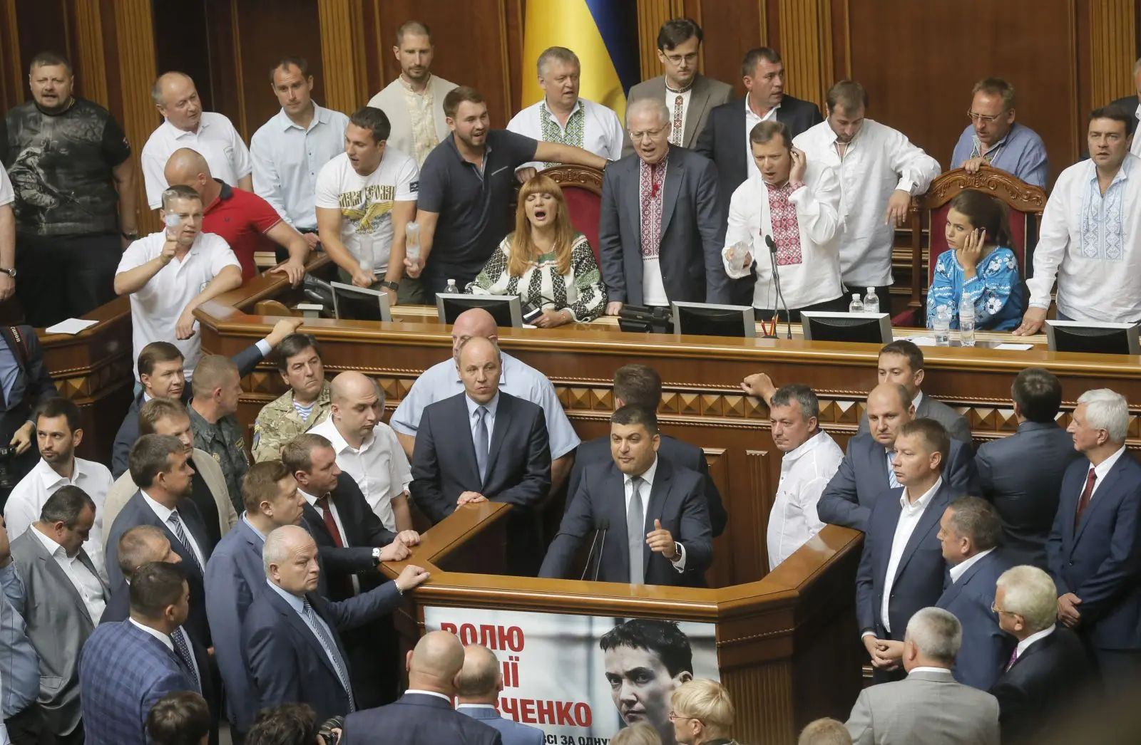 Обсуждение реформы Конституции Украины в Верховной раде, как в зале, так и за стенами, вызвало такие страсти, каких не видел украинский парламент за все время своего существования. На площади Конституции и улице Грушевского (перед Радой) собралась толпа радикалов-патриотов из «Правого сектора», УКРОПа, партии «Свобода» и Радикальной партии Олега Ляшко. Собравшиеся таким образом пытались надавить на депутатов перед голосованием по внесенным Порошенко поправкам.