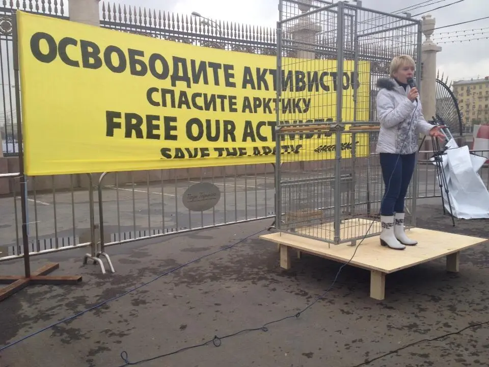 В Москве в гайд-парке на набережной около Крымского моста в Парке им. Горького «Гринпис» провела акцию поддержки задержанных на судне «Арктик Санрайз», которые обвиняются в пиратстве за то, что протестовали против добычи нефти в Арктике. 18 октября прошел месяц с захвата судна в международных водах. Мурманский областной суд принял решение о содержании под стражей всех задержанных, среди которых находятся и четыре гражданина России. Всех их обвиняют в пиратстве — не только активистов экологической орагнизации, но и членов экипажа, включая повара и судового врача.