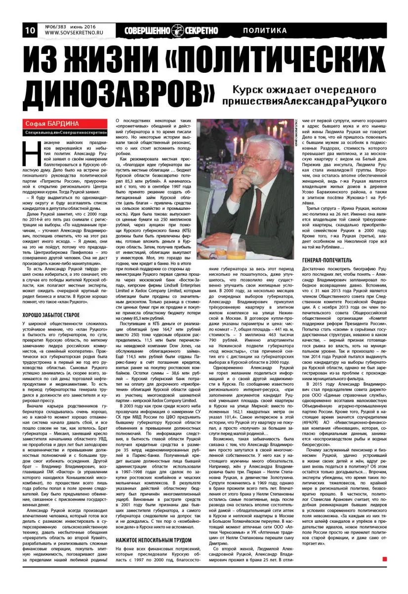 Одновременно Александр Руцкой не горел желанием поделиться информацией и о своей другой недвижимости в Курске. По сообщению известного регионального интернет-ресурса, «при заполнении документов кандидат Руцкой уменьшил площадь своей квартиры в Курске на улице Мирной: вместо положенных 162,1 квадратных метра он указал 101,4». Самое интересное в этой истории, что Руцкой эту квартиру не покупал, а просто «получил» за большие заслуги перед малой родиной…