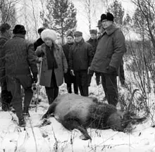 Никита Хрущёв на охоте в Завидово. 20 декабря 1963 года