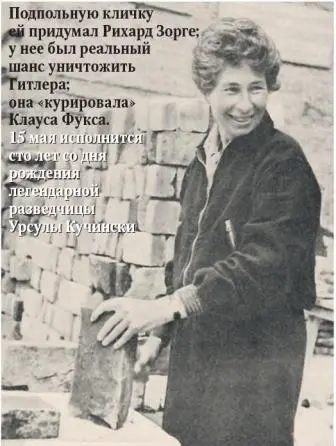 Урсула любила нашу страну. Ей приходилось бывать в Москве на переподготовке. Она видела и неустроенный быт, и трудности, особенно бросающиеся в глаза по сравнению с Европой. Но несмотря ни на что продолжала самоотверженно работать на советскую разведку.