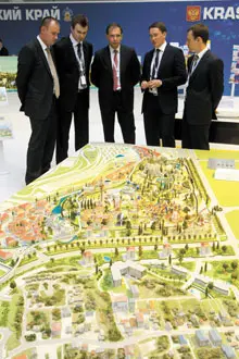 | Экспозиция Краснодарского края на форуме «Сочи-2010»; второй справа – процветающий бизнесмен, зять губернатора Роман Баталов | |