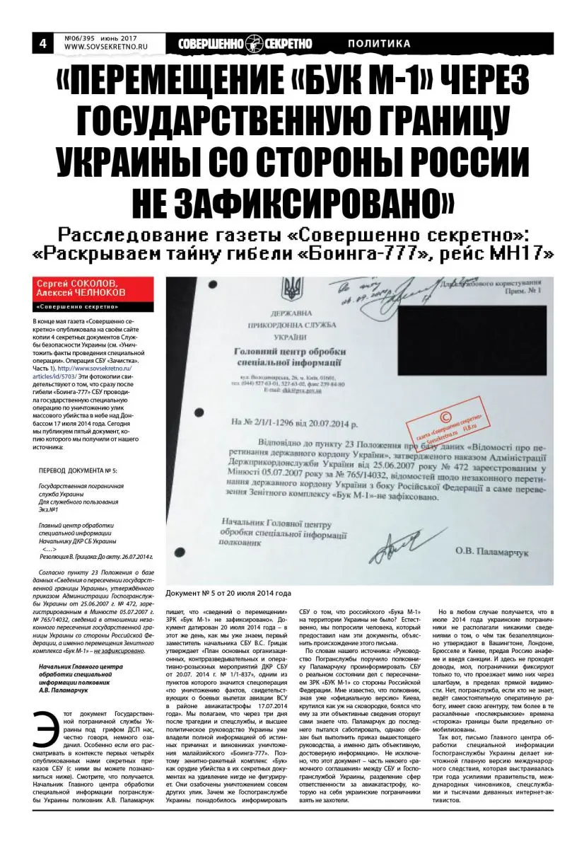 «Перемещение «Бук М-1» через государственную границу Украины со стороны России не зафиксировано». Расследование газеты «Совершенно секретно» и FLB.ru: «Раскрываем тайну гибели «Боинга-777», рейс MH17». Часть 2.