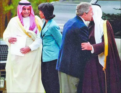А кто платил сверх этого? Главный дипломат и шпион саудитов – принц Бандар бен Султан – друг семьи Буш: ему даже дали кличку Бандар-Буш. Принц и его жена выписали чеков на 130 тысяч долларов на будущее «благое дело» и выслали их своему агенту Осаме Басснану – якобы на лечение его жены. Жене Омара аль-Байуми тоже немного перепало (стр. 426).