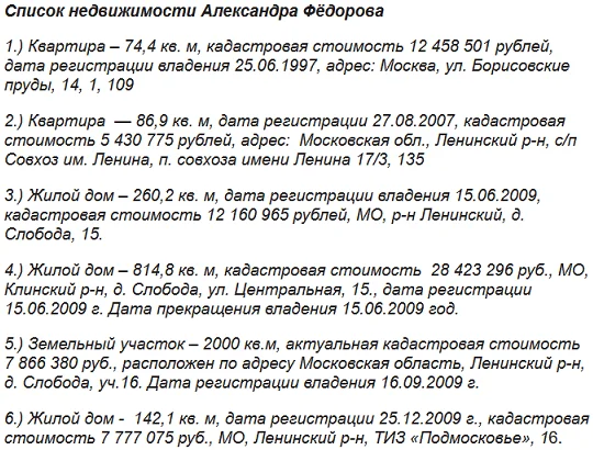 ДВИЖИМЫЕ И НЕДВИЖИМЫЕ ЗАБОТЫ ТОП-МЕНЕДЖЕРА АЛЕКСАНДРА ФЁДОРОВА