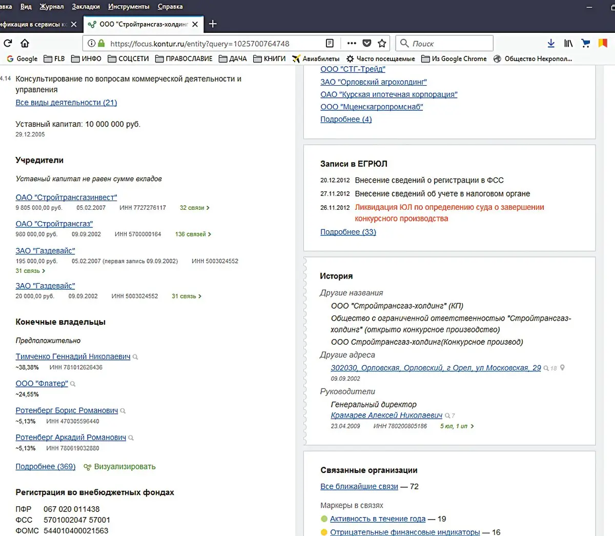 В свою очередь, «Газдевайс» стал одним из учредителей ООО «Стройтрансгаз-холдинг», которое было ликвидировано в конце 2012 года. Должность гендиректора и этой компании какое-то время также занимал Алексей Крамарев. Так вот, по данным того же «Контур. Фокуса», следует, что предположительно конечными владельцами «Стройтрансгаз-холдинга» были известные представители крупного капитала Геннадий Тимченко (~38,38%), Борис Ротенберг (~5,13%) и Аркадий Ротенберг (~5,13%).