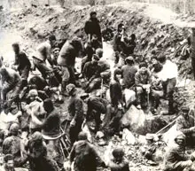 | Силами зэка велись большие стройки сталинских времен. На фото: заключенные укладывают рельсы | |