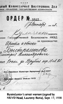 | В сентябре 1937 года ордер на арест Быстролетова подписал лично замнаркома внутренних дел Лаврентий Берия | |